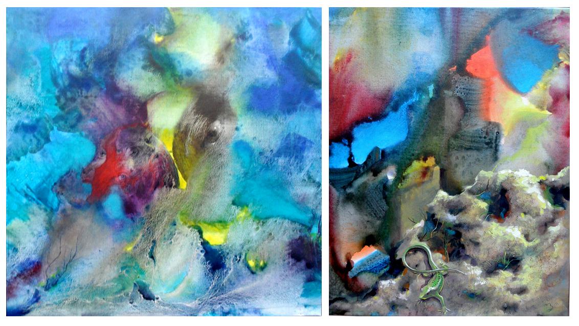 Auf der Ausstellung sind Aquarelle, Acrylbilder und Collagen von mir zu sehen.