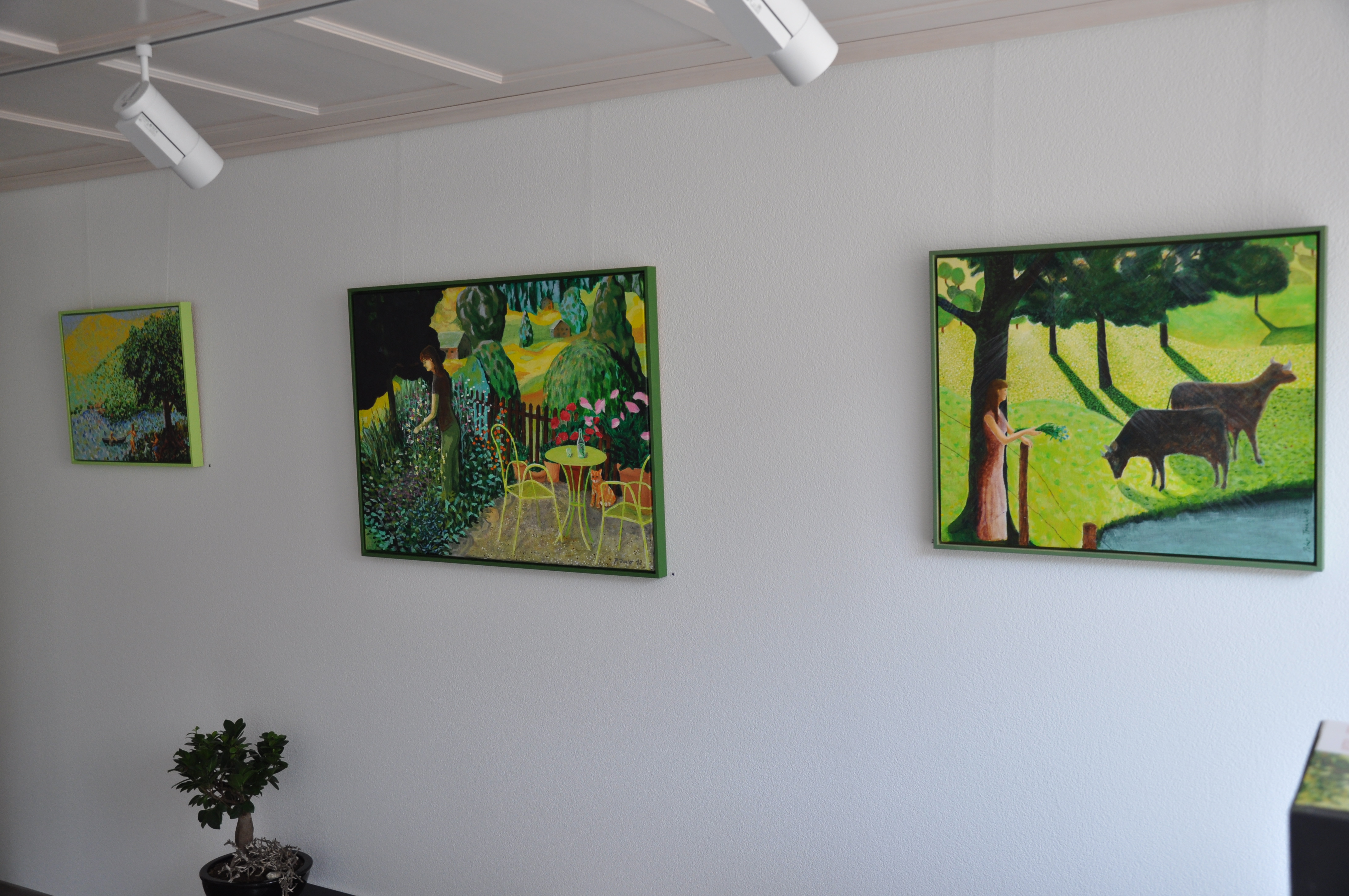 Leonhard Grötsch (Gemälde), Gerhard Brand (Drucke), Dr. Magnus Kuhn (Installation), Frances de Schrevel (Tonfiguren)