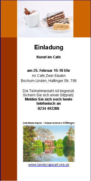 Auf der Ausstellung sind Aquarelle, Acrylbilder und Collagen von mir zu sehen.
