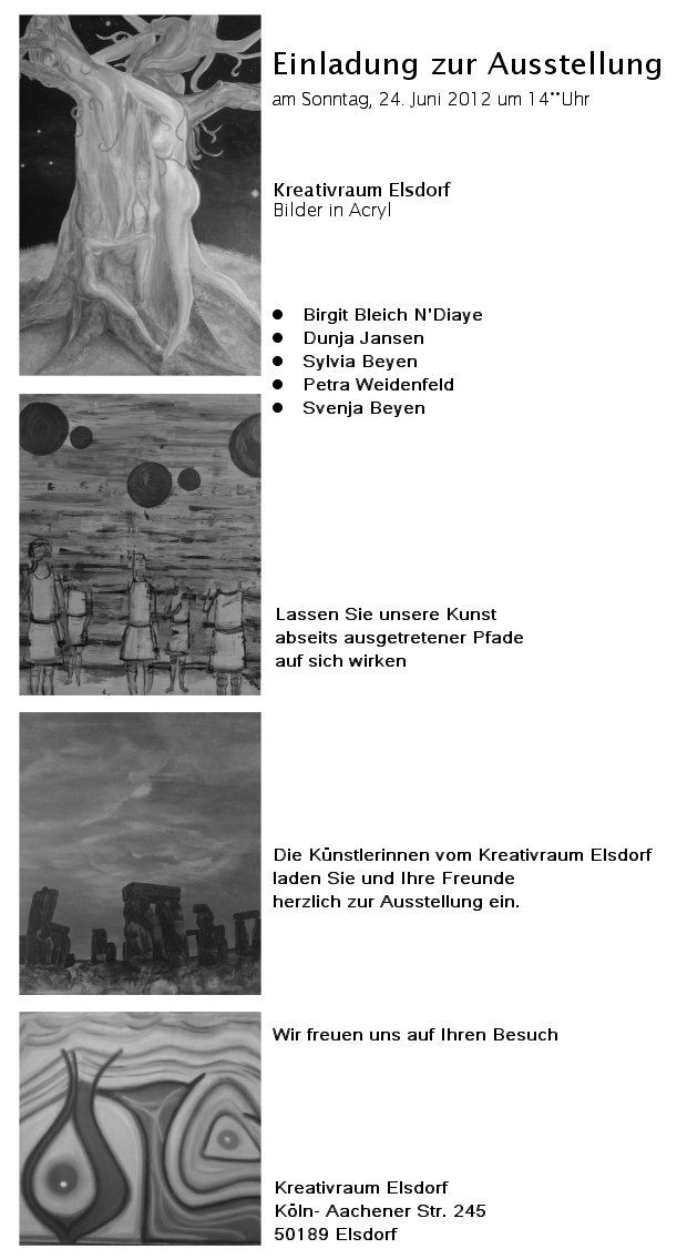 findet statt im Kulturzentrum Erzhammer. dort sind meine Bilder sowie die Bilder aus meinem Malkurs von unseren Frauen